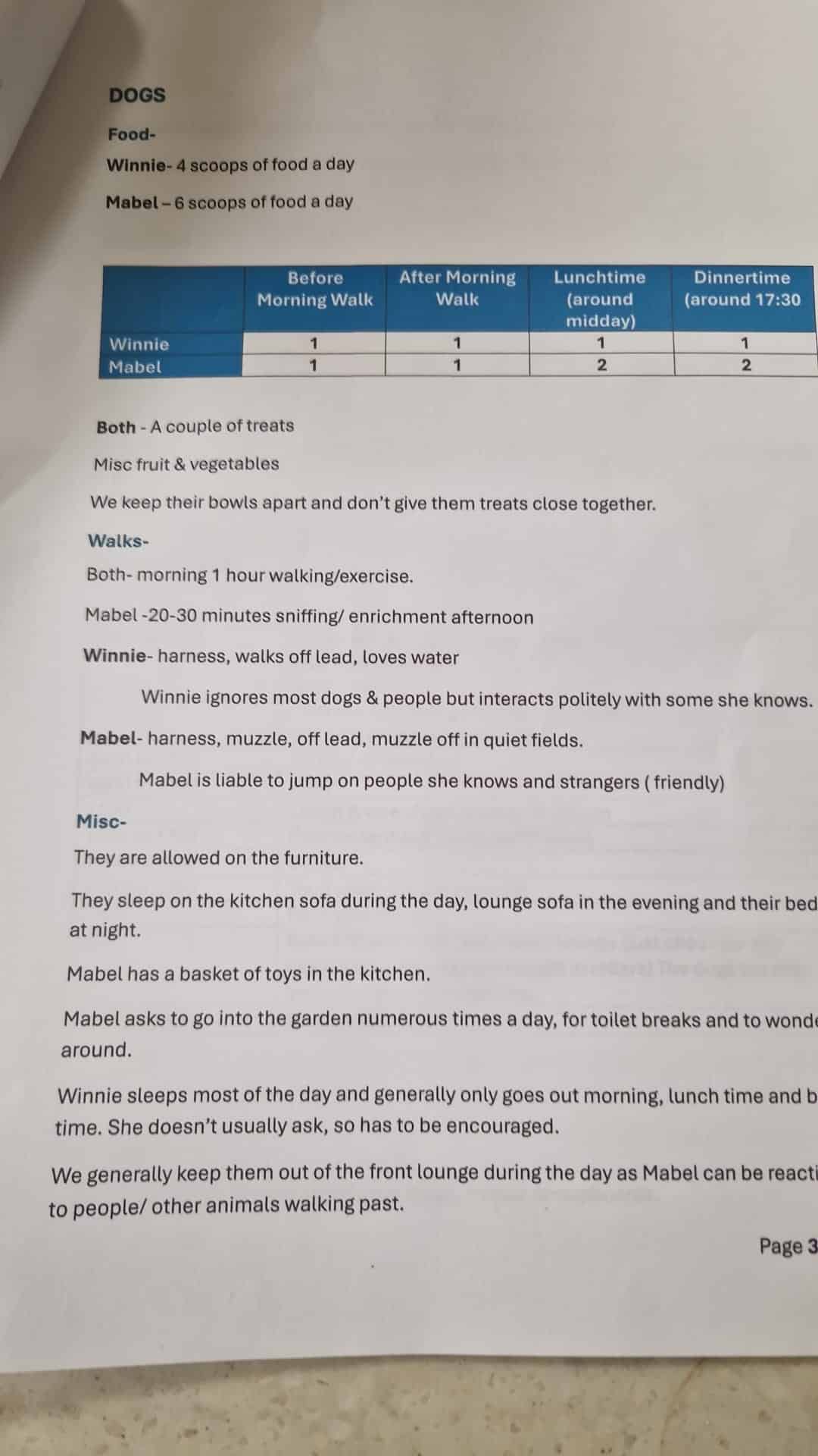 Let your walker or sitter know if your dog: